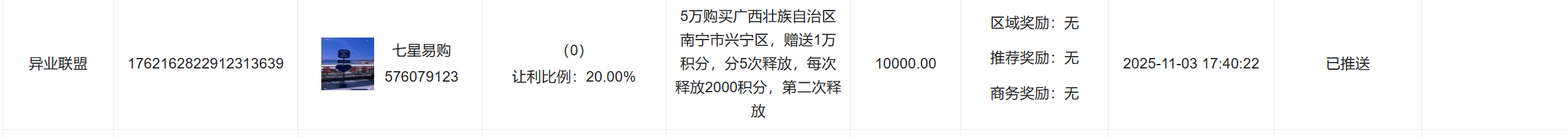 订单号:1762162822912313639,共10000积分,分5次释放,每次释放2000积分,第二次释放,释放ID:576079123