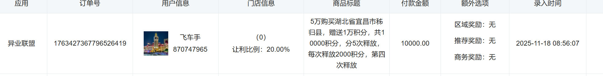 订单号:1763427367796526419,共10000积分,分5次释放,每次释放2000积分,第四次释放,释放ID:870747965