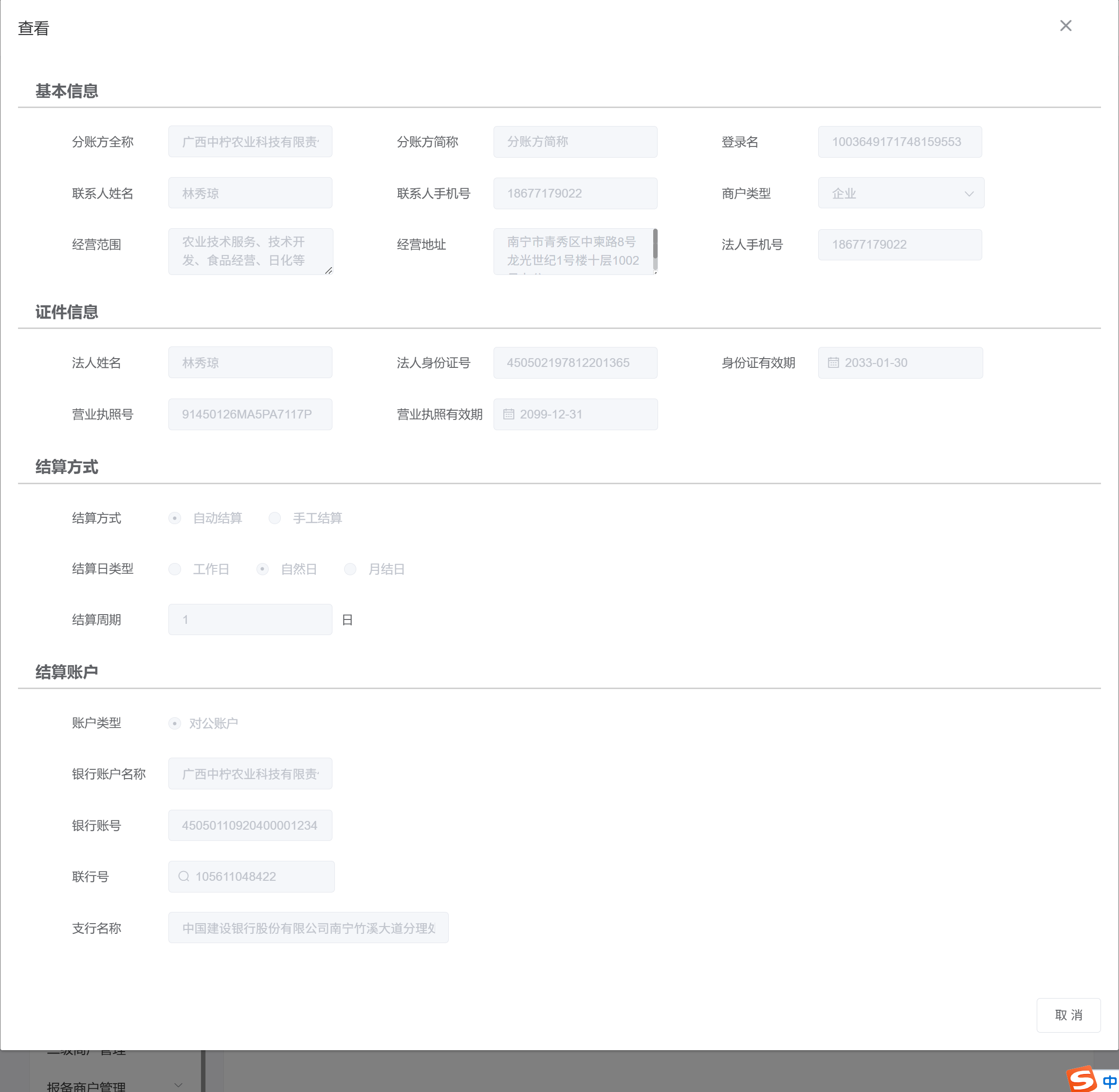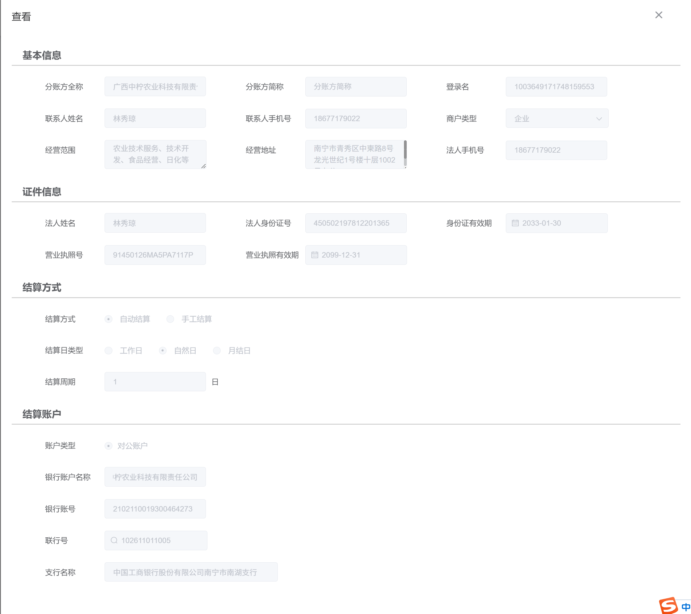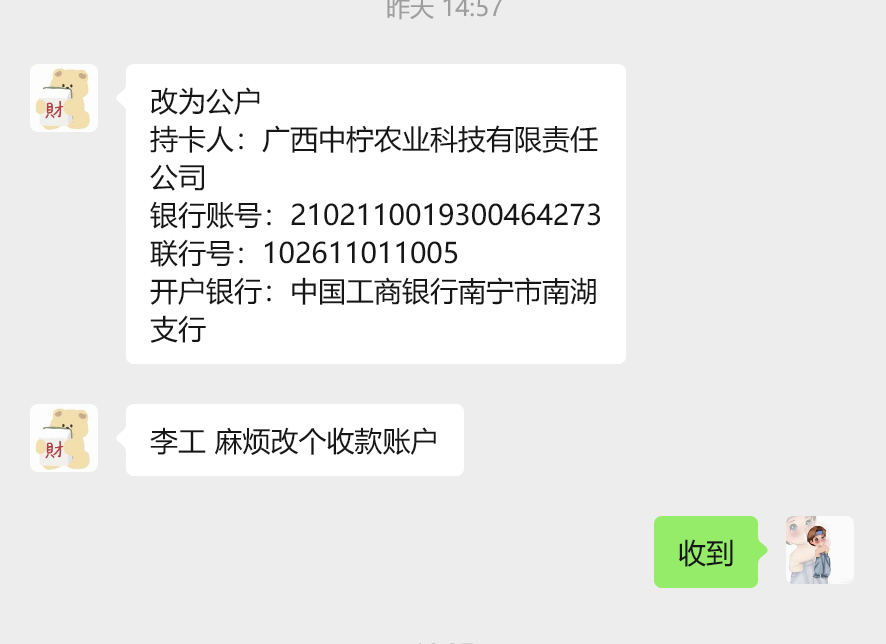持卡人:广西中柠农业科技有限责任公司