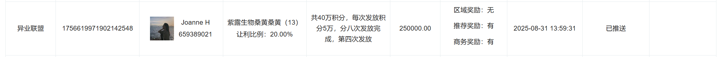 打开2025-08-31,商户和用户积分已正常发放,发放订单号:1756619971902142548
