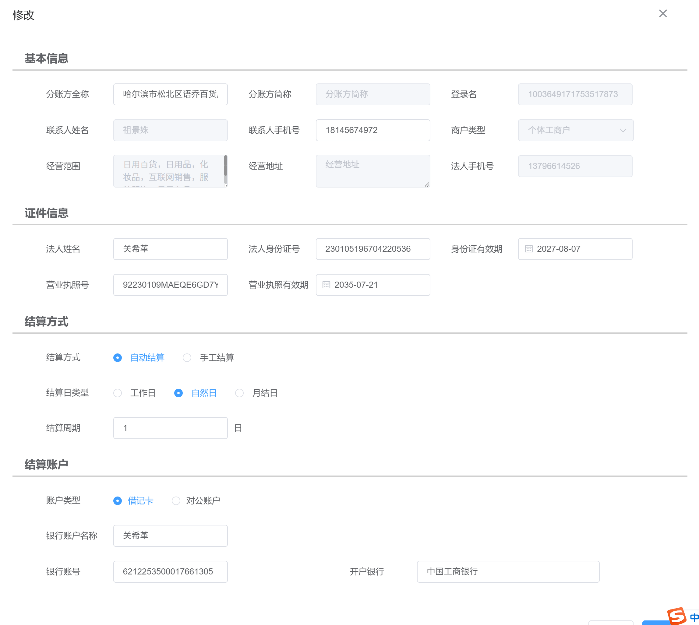 打开修改银行卡-语乔百货店(提出人:王馨瞳)