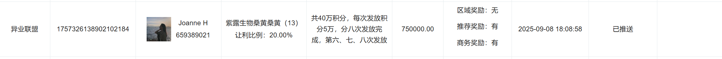 打开2025-09-08,商户和用户积分已正常发放,发放订单号:1757326138902102184
