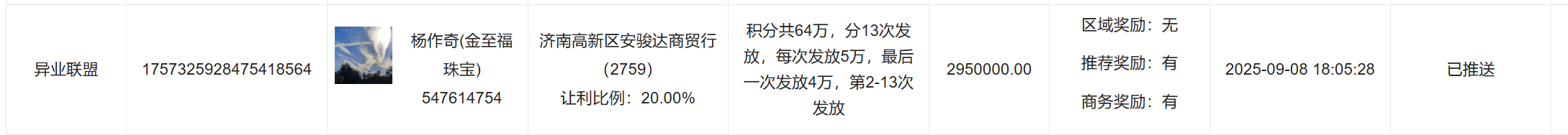 积分共64万,分13次发放,每次发放5万,最后一次发放4万,第2-13次发放(最后一次释放)