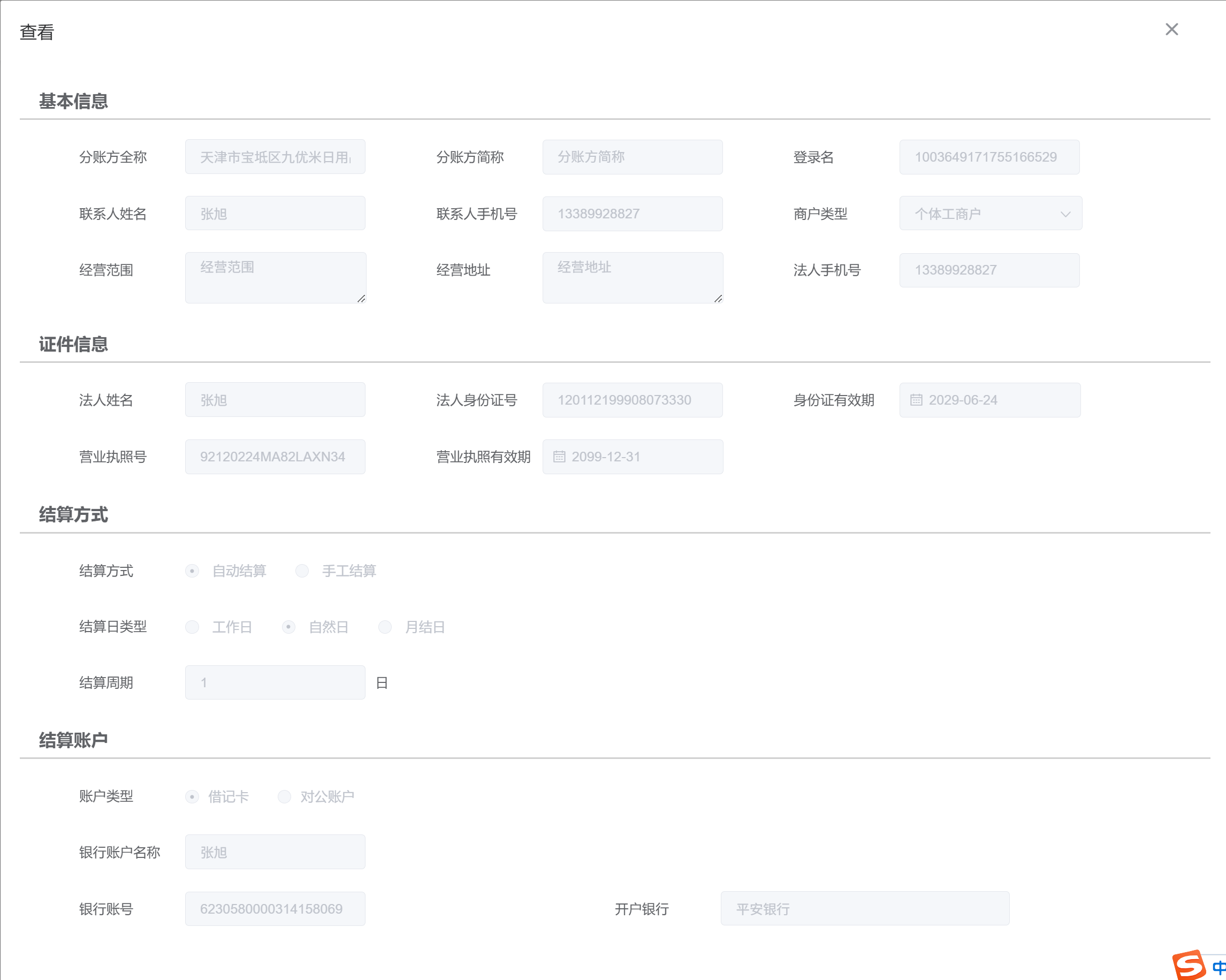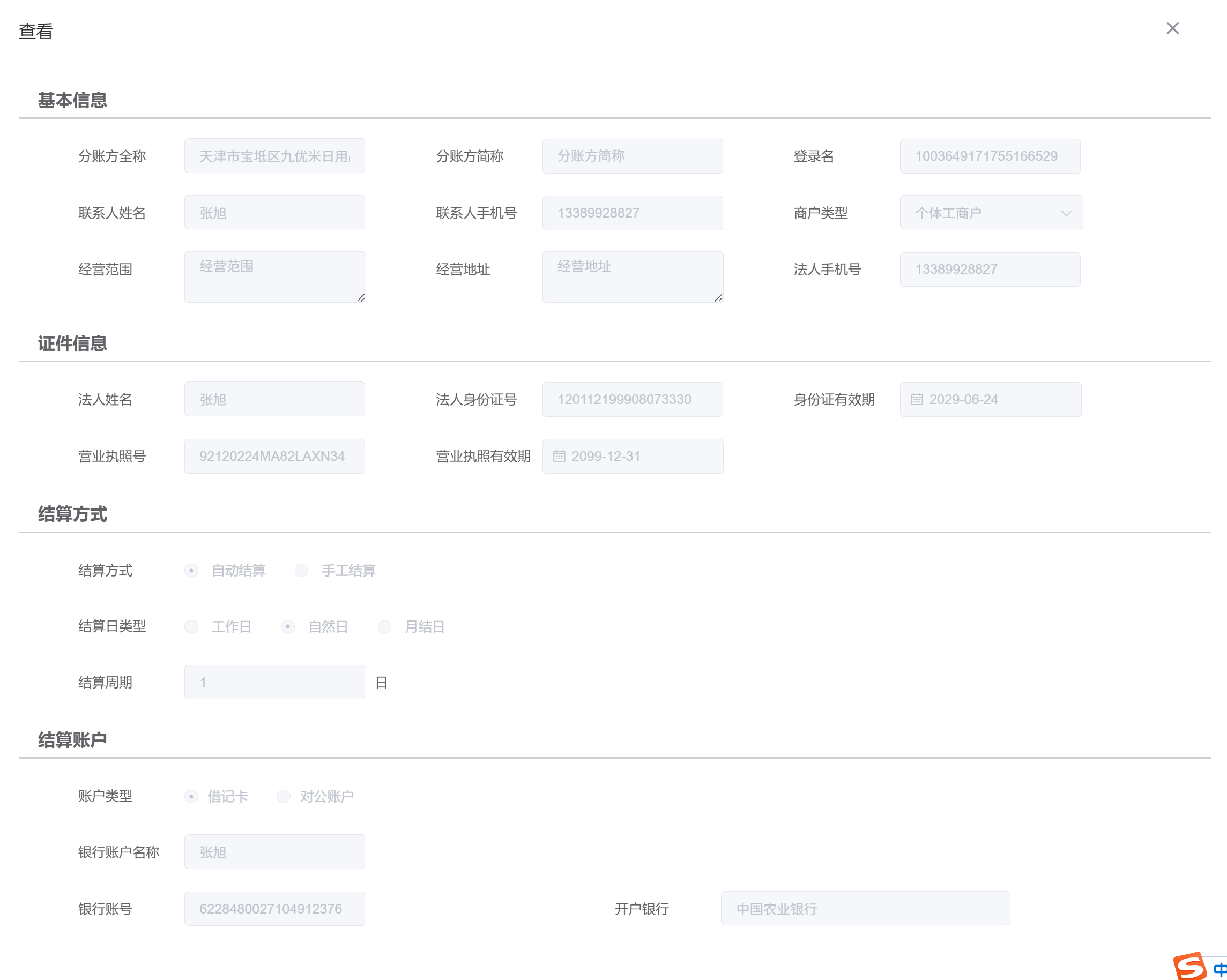 打开九优米日用品经营部,修改银行卡(提出人:吕俊颖)